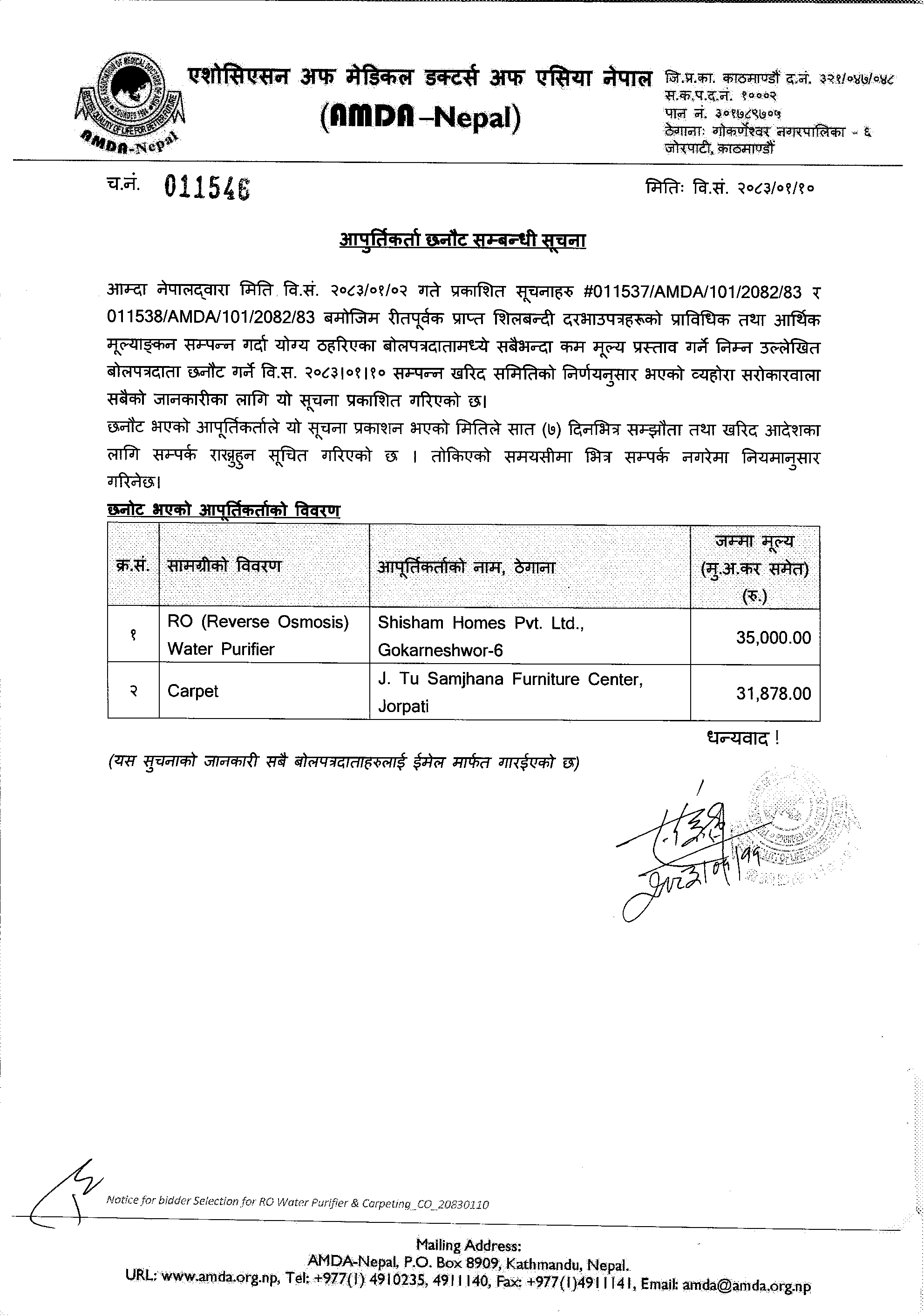 Gokarneshwar-6, Jorpati, Kathmandu, Nepal Tel: +977-1-4910235, 4911140