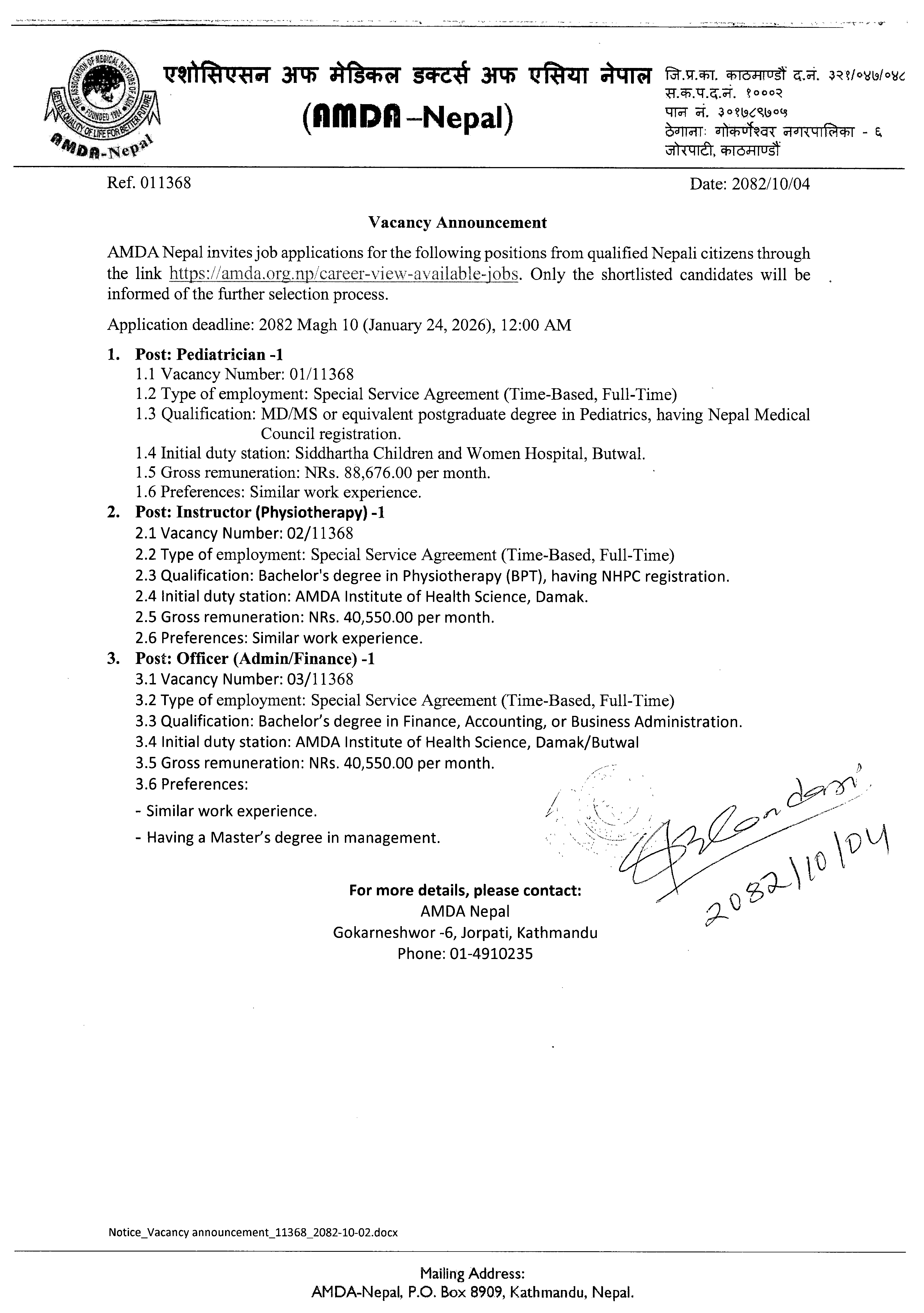 Gokarneshwar-6, Jorpati, Kathmandu, Nepal Tel: +977-1-4910235, 4911140